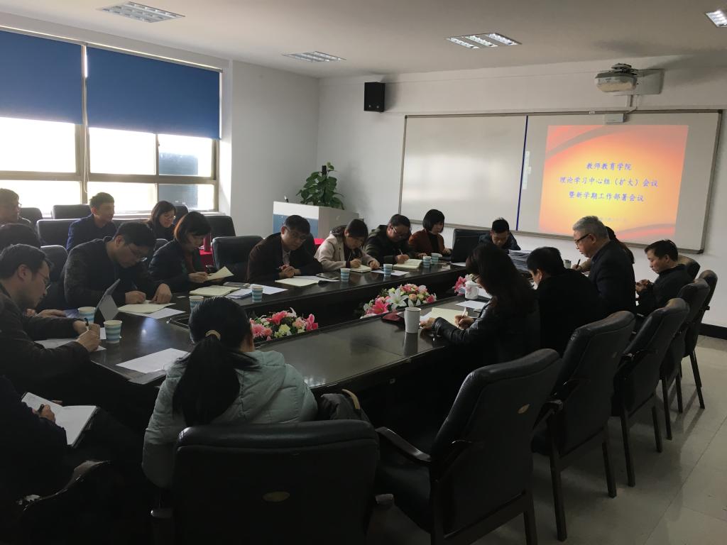 3月21日下午,我院在南校区9A410会议室召开理论学习中心组(扩大)会议暨新学期工作部署会议,学院党政班子领导以及全体中层干部参加,杨立淮书记主持。