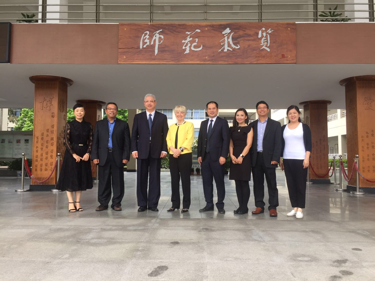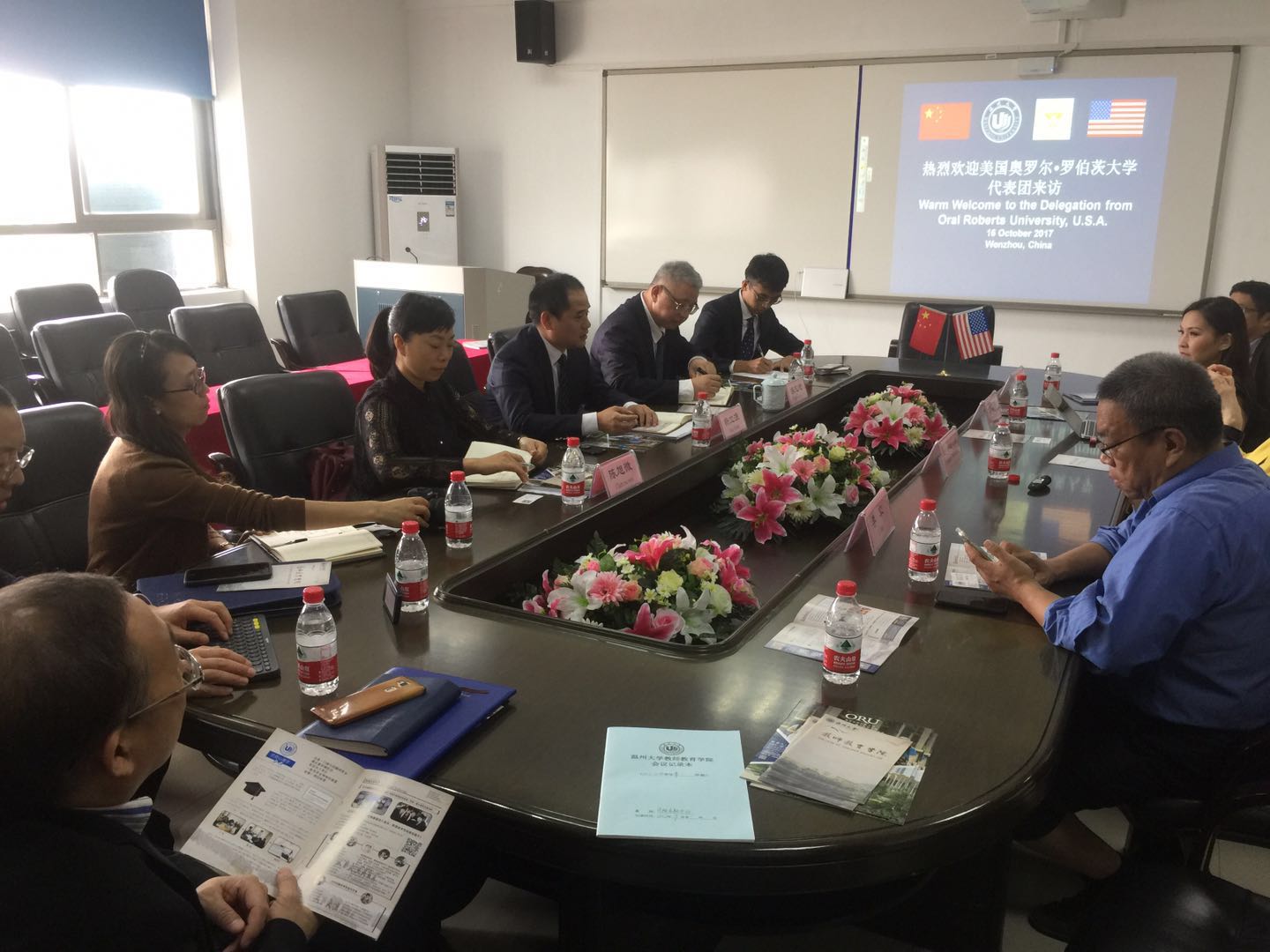 2017年10月16日,美国奥罗尔·罗伯茨大学(ORU)代表团,在瑞德-马蒂娜丝·凯思琳女士(ORU首席副校长兼总教务长)带领下,来到我院进行深入洽谈。校外事处处长严晓鹏、副处长熊勇,学院党总支书记杨立淮、副院长潘玉进,学前教育系书记陈旭微、副主任杨婧以及相关人员参与了此次洽谈会。