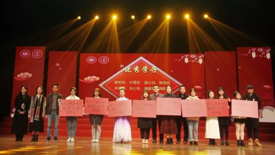 晚会不知不觉间接近尾声,主持人通过随机抽取门票的方式选出幸运观众,由校团委副书记易招娣颁发终极大奖。