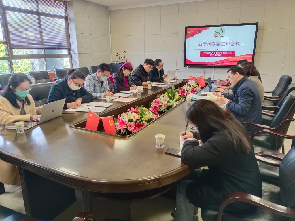 会议部署了新学期学院党建工作。何书记结合学校党建工作要点及近期安排,部署新一轮基层党组织标准化建设达标验收工作及党组织发展党员工作专项督查和常态化检查等重点工作。会议解读传达了《中共p站视频 委员会2022年度党建工作要点》。会议指出,学院党委将以全面创建全国高校党建标杆院系为契机,对标学校年度工作主题主线,落实学院“1410”计划,坚持和加强党的全面领导,为推动学院高质量发展提供坚强的政治保障和组织保证,以优异成绩迎接党的二十大胜利召开。