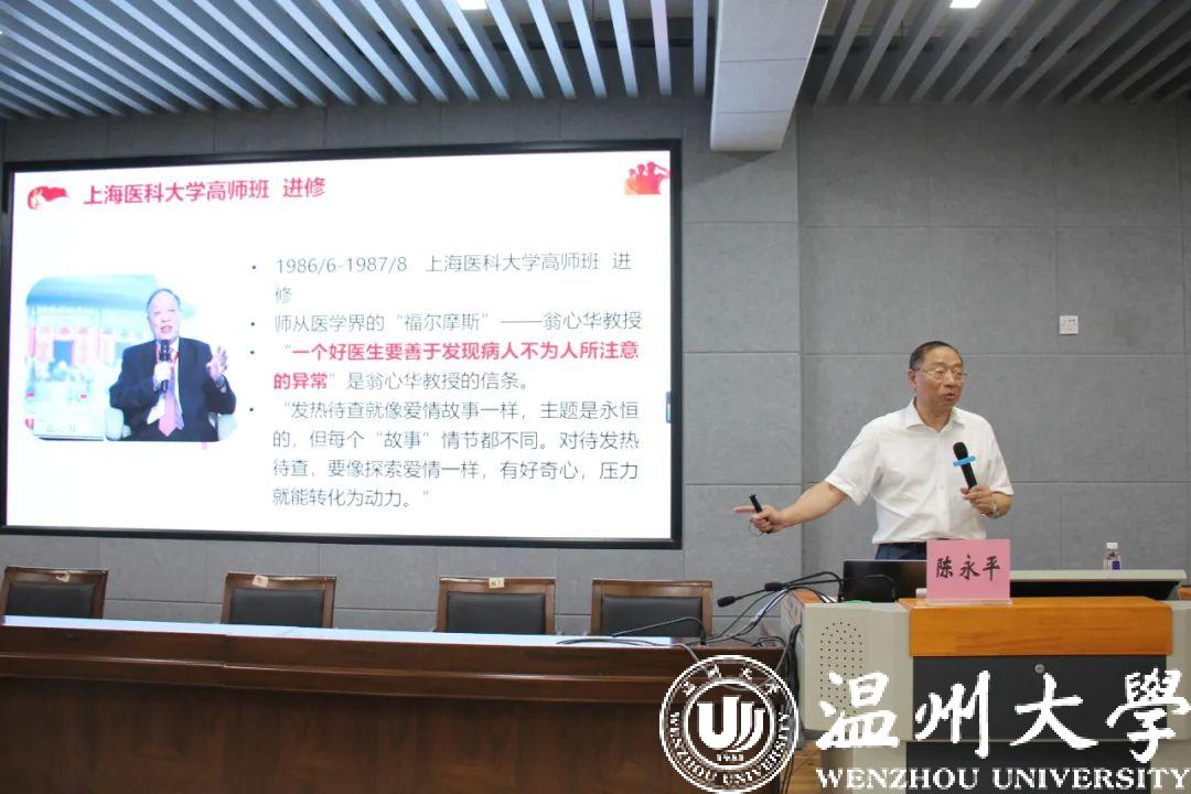 《形势与政策》课是高校学生思想政治教育的重要内容,是高校思想政治理论课的重要组成,是帮助大学生正确认识新时代国内外形势,深刻领会党和国家事业取得的历史性成就、发生的历史性变革、面临的历史性机遇和挑战的核心课程。为全面贯彻落实习近平总书记关于劳动教育重要论述精神,深入推进新时代劳动教育实践,有力落实“五育并举”理念,2022年6月9日晚上,我院联合外国语学院采用线上和线下相结合的形式开展以“弘扬劳模精神,坚守平凡岗位”为主题的《形势与政策》课暨劳动教育专题讲座。全国劳模、温州医科大学附属第一医院肝病诊治中心主任陈永平教授担任本次讲座的主讲人,学院党委副书记章园园、学工办辅导员孟江龙一同出席了本场报告。