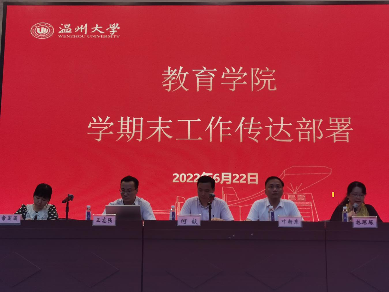 何毅书记首先做浙江省第十五次党代会精神的传达学习,要求全院教职工深入学习贯彻省委书记袁家军同志重要讲话精神,结合学院实际,把省党代会精神落实好,把教院形象维护好,以优异办学成绩为学校发展贡献力量。