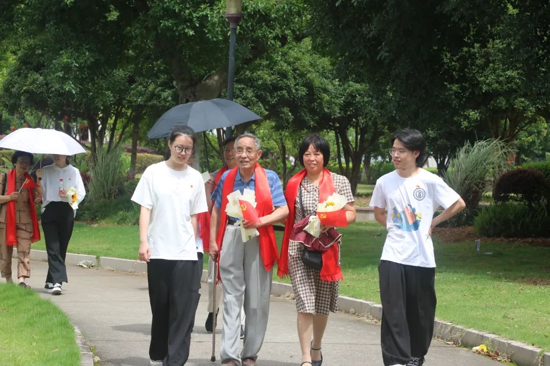 老党员们在学生党员的陪伴下参观了美丽校园,从p站视频 到明心湖,从明心湖到国旗广场,校园熟悉而美丽的景色唤起了老党员们心中的回忆。