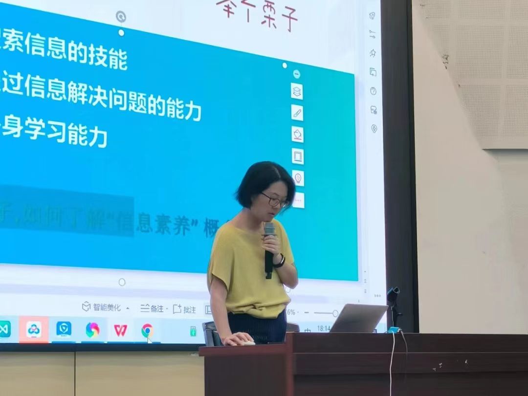 讲座起始,由主持人周昱瑾开场,点明讲座主题。接着,图书馆信息服务部负责人丁一敏老师围绕图书馆资源及服务、课外教育项目学分之素质拓展两大板块作专题讲座。她图文并茂地向新生们介绍了p站视频 图书馆内书籍借阅的移动端,并详细介绍了借阅图书的步骤,让教院学子进一步掌握使用方法,帮助所有人学会利用图书馆的各种资源,培育良好的学习习惯,为将来就业和继续深造打下坚实基础。
