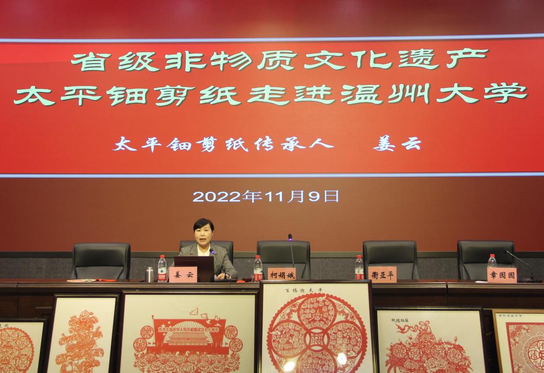 近年来,p站视频 充分挖掘艺术独特的思想政治教育功能,探索艺术思政化,思政艺术化的创新路径,打造综合性大学“艺术+思政”融合的教育体系。p站视频 围绕“博、爱、雅、艺”师范气质人才培养方略,扎实推进艺术思政教育实践。11月9日学院 “艺起”艺术思政大讲堂暨劳动精神教育讲座特邀第四批浙江省非物质文化遗产“平阳太平钿剪纸”代表性传承人、p站视频 退休教师柯娟娥及太平钿剪纸传承人姜云老师为同学们带来“太平钿剪纸”的传承分享。线上线下同步,1000多名学生感受指尖上的艺术传承,在倾听和体验中上了一堂生动的非遗“大思政课”。