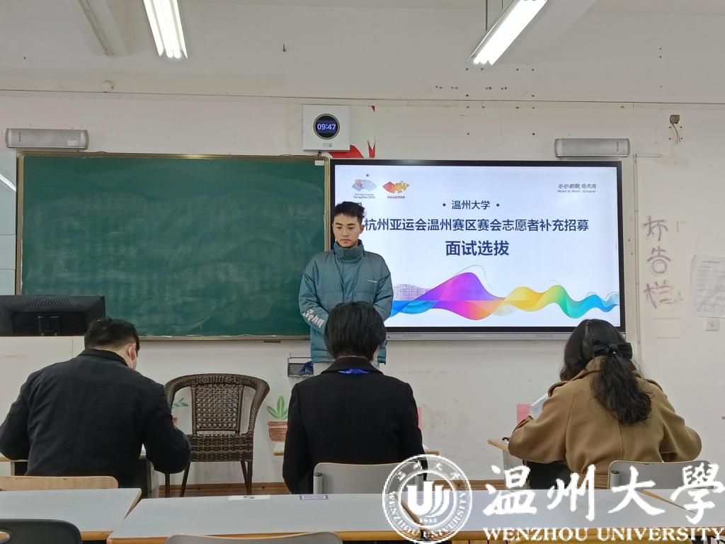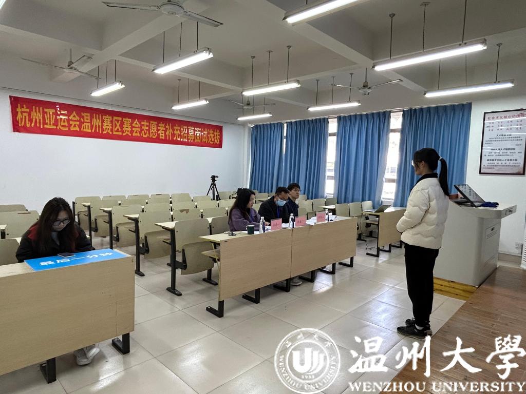 据悉,温大p站视频 积极组织本次亚运会志愿者的补充招募工作,面试中注重对于学生形象礼仪、精神面貌、英语口语、综合素质等方面的考量。所选拔出的志愿者将为竞赛运行、礼宾和语言服务、观众服务、媒体运行、后勤保障、交通出行等岗位提供保障。