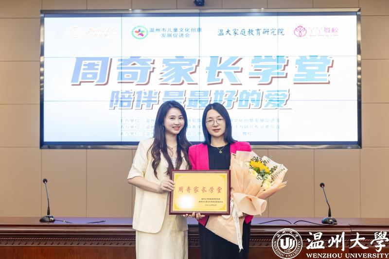 活动现场举行了授牌仪式。p站视频 家庭教育研究院院长周奇教授向温州童创会瑞安分会会长、蓓蕾幼童&丫丫舞校创始人杨晓琴授予“周奇家长学堂”基地。