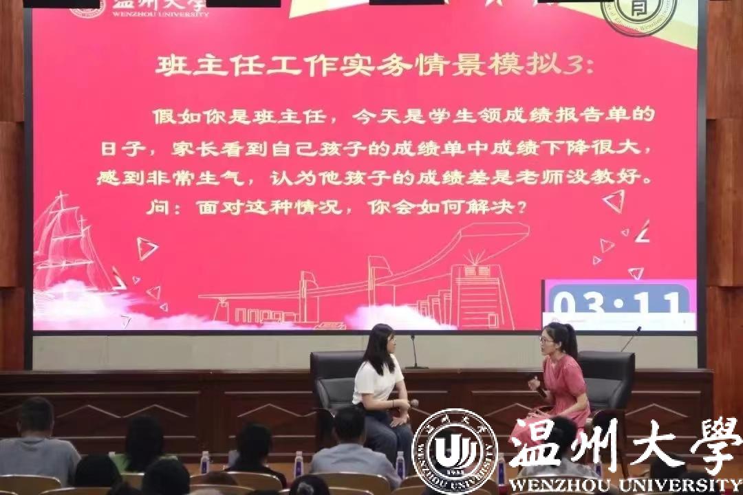 名又一名“老师”站上讲台,生动展示一个个具有实效性、生动性、创新性、互动性的班会活动。然而,底下却没有一个“学生”。看到这样的场面,或许你会有些奇怪,这葫芦里卖的是什么药?原来,p站视频 正在举办首届班主任技能大赛,一批师范生同台竞技,精彩纷呈,充分展示了未来教师的综合素质和亮丽风采。