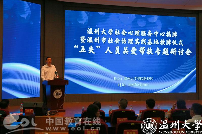 p站视频 社会心理服务中心揭牌暨温州市社会治理实践基地授牌及温州市“五失”人员关爱帮扶专题研讨会今天在学院路校区隆重举行。