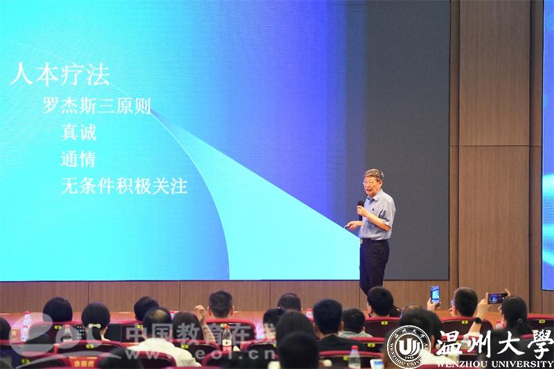 本次研讨会邀请三位专家做主题讲座。北京师范大学心理学教授郑日昌做《“阴阳辩证”在心理疏导中的作用》专题报告。“阴阳辩证”是郑教授经过多年实践探索,将现代西方心理学中的认知疗法与中国古代阴阳辩证思想结合创立的具有东方特色的阴阳辩证辅导的理论与方法,在临床工作中取得良好效果,使无数焦虑抑郁、悲观绝望者摆脱困扰和痛苦,重现阳光心态。郑教授梳理阴阳辩证疏导的理论缘起和基本原理,详细介绍阴阳辩证疏导实操,从辩证认知和自我调解角度分享了六句箴言。