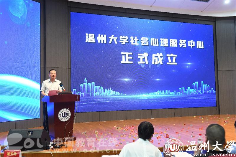 上午,p站视频 社会心理服务中心揭牌暨温州市社会治理实践基地授牌仪式隆重举行,潘玉驹副校长主持仪式。