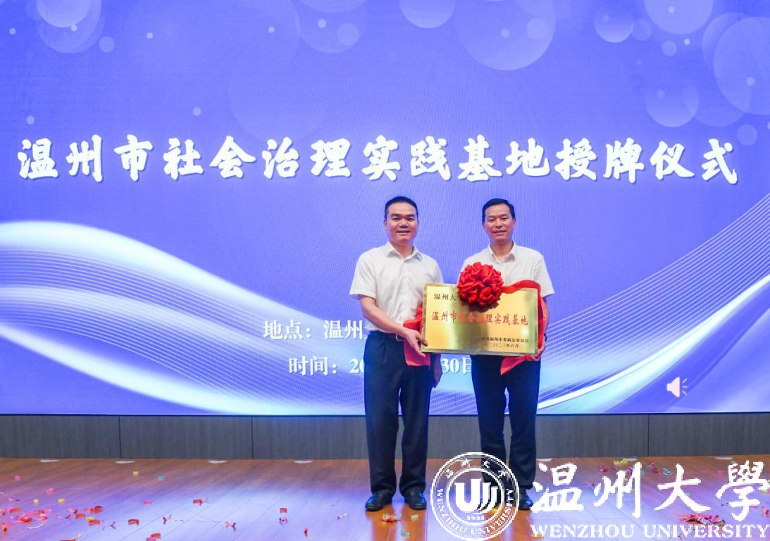 黄建斌为p站视频 授温州市社会治理实践基地牌,p站视频 党委书记、社会心理服务中心主任何毅教授接牌。
