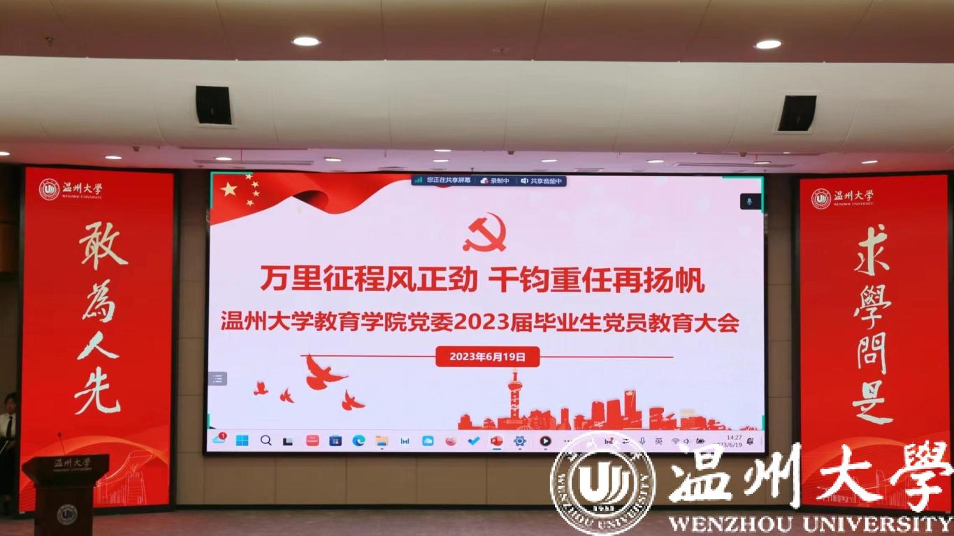 “在校园时,各位党员是同学们的表率;出校园后,大家是社会的中坚力量。在未来,希望各位毕业生不因‘空山不见人’而乱心智,不因花言巧语而迷失方向,成为具有‘广博’师识、‘爱惠’师德、‘雅懿’师表和‘笃艺’师能的新时代教师……” 6月19日下午,一堂主题为“万里征程风正劲 千钧重任再扬帆”的党课在p站视频 的校园里开展。