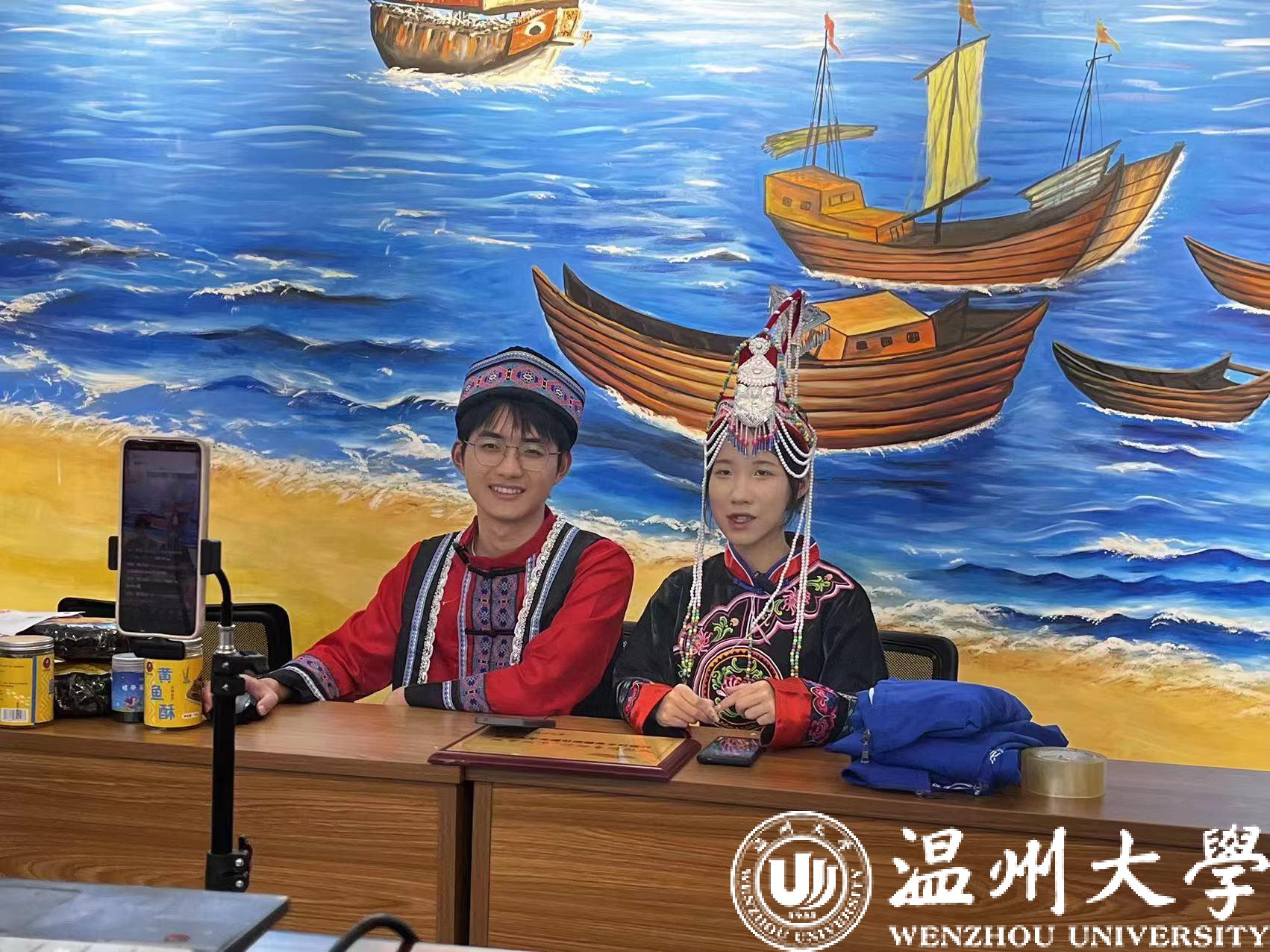 为壮大村集体经济发展,拓宽农产品销售。“浙山浙水”暑期实践队也是首次化身小畲味“石榴红共富工坊”展开了独具特色的直播活动。在苍南县赤溪镇石塘村文化礼堂,小主播们围绕赤溪传统美食紫菜、民族体育、民族文化穿衣产品进行了直播宣传,实时在线观众破万、点赞超10万。