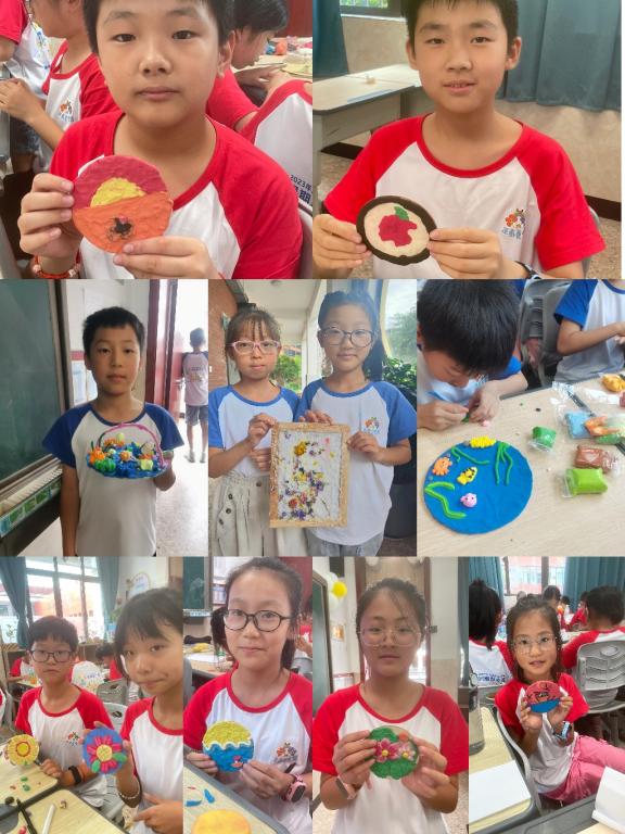 山水名城温州古称“瓯”,一条瓯江孕育着温州勃勃的生机,更涤荡出多种独特的民间工艺。知心姐姐馨馨老师带来特色课程“走进瓯塑”,小营员们以盘子为画纸,以瓯土为画笔,当起“小小瓯塑家”。几幅名家之作引得孩子们惊叹不已,纷纷说出瓯塑的特征——画面色彩明快,构图格局自由,层次清晰,立体感强……课堂氛围活跃热烈,学生积极发问、频繁互动。制作过程中,他们将想象赋予瓯塑,画下喜欢的图案,再“捏、揉、搓”瓯土,用“木蹄儿”小心翼翼地塑形……一幅幅精美立体的瓯塑作品诞生了,不少孩子由此爱上了瓯塑:“真是太有趣了,原来我也能做出瓯塑,回家我还要雕刻更多好看的作品……”特色瓯塑课程旨在以非遗美育为抓手,培养小营员多元文化意识和文化认同,让孩子在劳动实践中学习先辈手艺,感悟工匠精神!