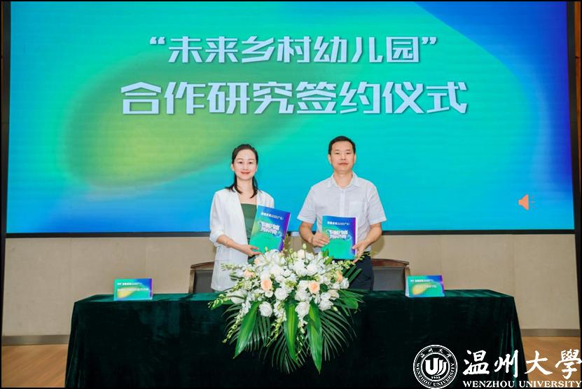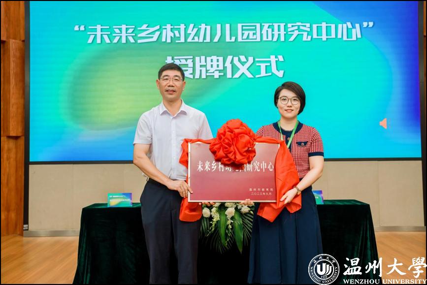 市学前教育指导中心主任陈苗和温大p站视频 党委书记何毅分别代表市学前教育指导中心和温大p站视频 进行“未来乡村幼儿园”合作研究签约。温州市教育局在温大p站视频 设立“未来乡村幼儿园研究中心”并向院方代表授牌。