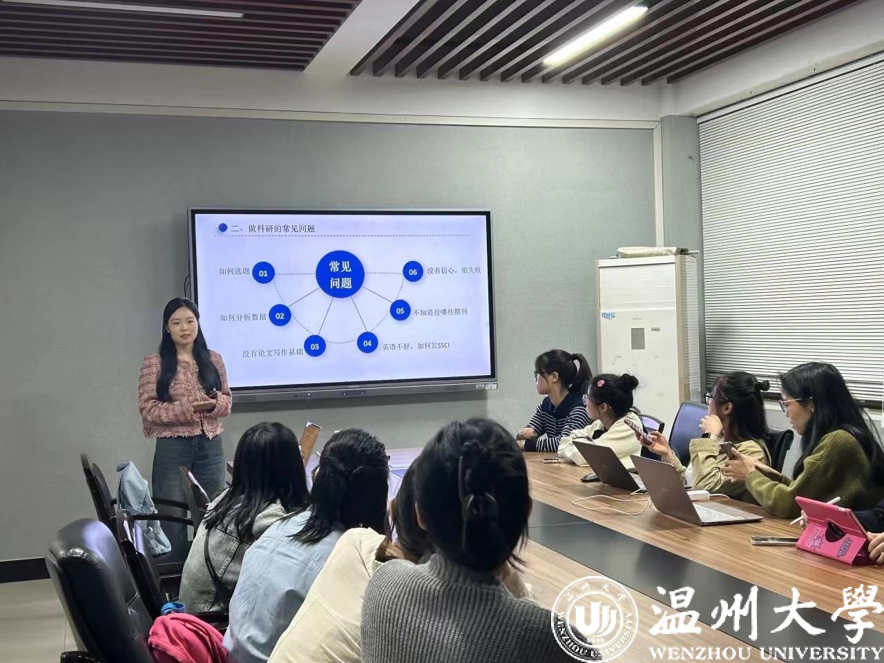 据悉,本次交流会为温大p站视频 ”溯初研学营“系列品牌活动,来自学前教育专业的王由丽同学和教育技术专业的陈禹辰同学作为”新鲜出炉”的国奖获得者,为研究生同学们分享了日常学习、论文写作、科研技巧等方面的经验。