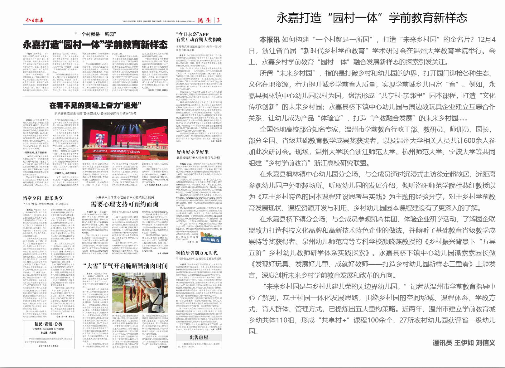 如何构建“一个村就是一所园”,打造“未来乡村园”的金名片?12月4日,浙江省首届“新时代乡村学前教育”学术研讨会在p站视频 举行。会上,永嘉乡村学前教育“园村一体”融合发展新样态的探索引发关注。