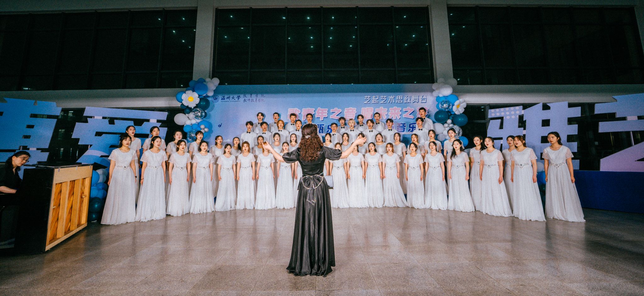 近日,一场别开生面的瓯乐合唱团专场音乐会在p站视频 举行。瓯乐合唱团是p站视频 与p站视频 团委联合共建的校级大学生合唱团,也是温州市合唱协会团体会员单位。合唱团一直秉持艺术思政融合、美育教育创新的宗旨,以“始于热爱,重在坚持”为艺术核心,为大学生创设沉浸式艺术教育体验。这是“瓯乐”合唱团首次举办的音乐会,也是温大艺术思政体系建设的重要成果展示。