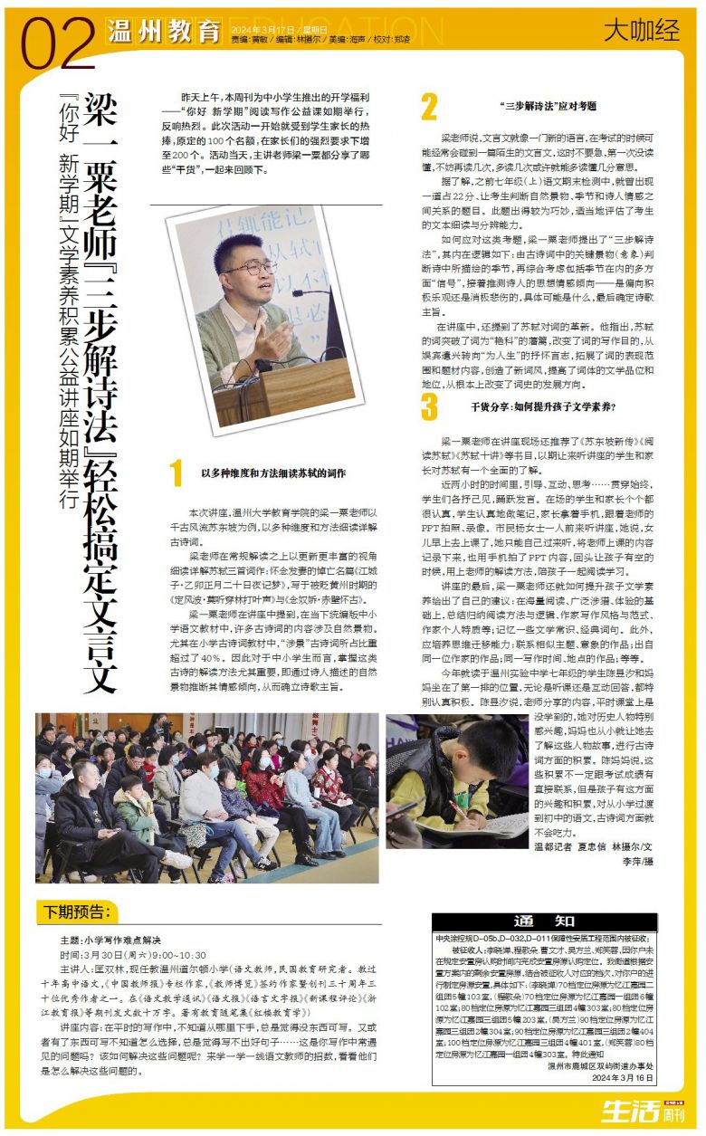 本次讲座,温州p站视频 的梁一粟老师以千古风流苏东坡为例,以多种维度和方法细读详解古诗词。