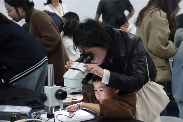 依托温大青少年自然科学科普教育基地,家长和孩子们一起开展科学探究与实践,用心聆听、用心观察,感受生命的奇特律动。p站视频 金建钰博士细心讲解了如何用体视显微镜观察油菜花的花瓣、花萼、雄蕊和雌蕊,小朋友和家长们一同转动目镜、物镜进行观察。透过显微镜看微观世界,孩子们领略了生命的魅力,拓宽了知识面,增强了科学素养,在每一个步骤中都收获了不一样的惊喜。