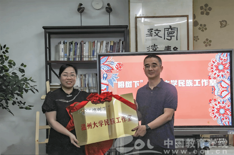在授牌仪式前,p站视频 民族工作室指导教师、p站视频 党委副书记章园园介绍工作室前期建设与发展情况。在热烈的掌声中,温州市公安局副局长黄伟军为工作室授牌,p站视频 学生工作部部长姜海燕接牌。此次授牌仪式标志着民族工作室与地方合作的崭新篇章。相关领导、老师和同学们围绕工作室的未来发展和民族团结教育进行了深入的交流和讨论。