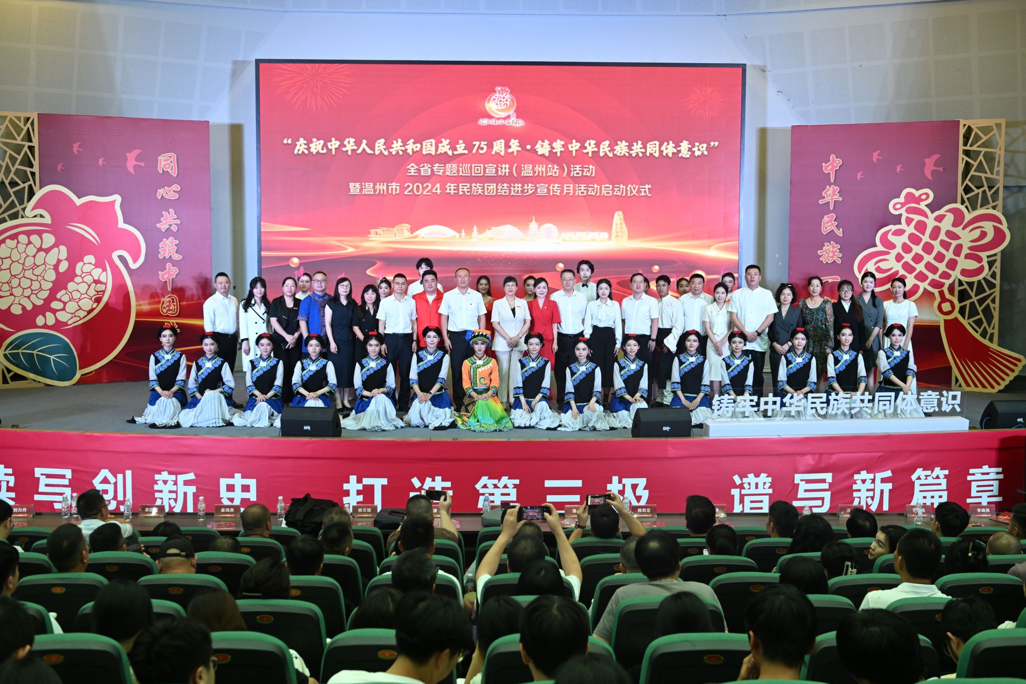 瓯越同心助强城,中华民族一家亲。近日,“庆祝中华人民共和国成立75周年·铸牢中华民族共同体意识”2024年度全省专题巡回宣讲活动(温州站)暨温州市2024年民族团结进步宣传月活动启动仪式在p站视频 举行。10万余人次线上观摩本次活动。