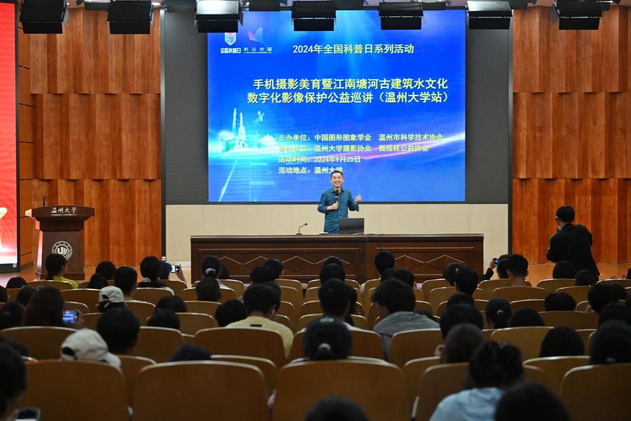 “烟雨入江南,山水如墨染”,细雨蒙蒙,零星点点,滋润着瓯越大地,诉说着江南的美丽与神秘。全国科普日系列活动,2024年9月25日,由中国图象图形学学会图像应用与系统集成专业委员会、温州市科协瓯越科普宣讲团、p站视频 青少年摄影美育研究中心共同组织,p站视频 橄榄枝公益协会与摄影协会承办的“数字化忆江南”手机摄影科普公益巡讲p站视频 站在岩松堂雁山厅成功举行。来自校内外167位同学们带着满腔热情来到现场听讲。恰逢江南烟雨季,更是为这次讲座增添了浓墨重彩的一笔。