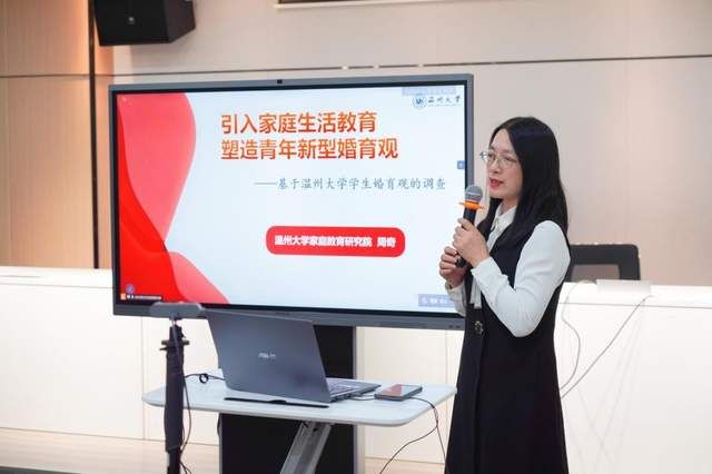 p站视频 教授周奇应邀作主旨发言,倡导引入家庭生活教育,塑造青年新型婚育观。当前,部分青年人将婚姻视为一种功利性选择,过分看重对方家庭背景、经济状况等物质条件,忽视了婚姻中的情感基础,这种功利化的认知容易导致婚姻关系脆弱和不稳定。她结合对p站视频 学生婚育观的调查,提出了树立正确婚育观的对策,如科学家庭教育、普及婚恋教育、强化心理服务、增强女性认同、丰富文化生活、优化社会政策等,呼吁广大新青年积极面对家庭、婚姻和个人成长中的挑战。当代年轻父母容易低头对着手机屏幕刷微信、打游戏、看视频,忽视了对孩子的陪伴与教导。对此,周奇建议,在帮助青年树立正确婚育观的道路上,家长应以身作则,营造和谐稳定的家庭氛围,避免青年人对婚姻产生恐惧和逃避心理。