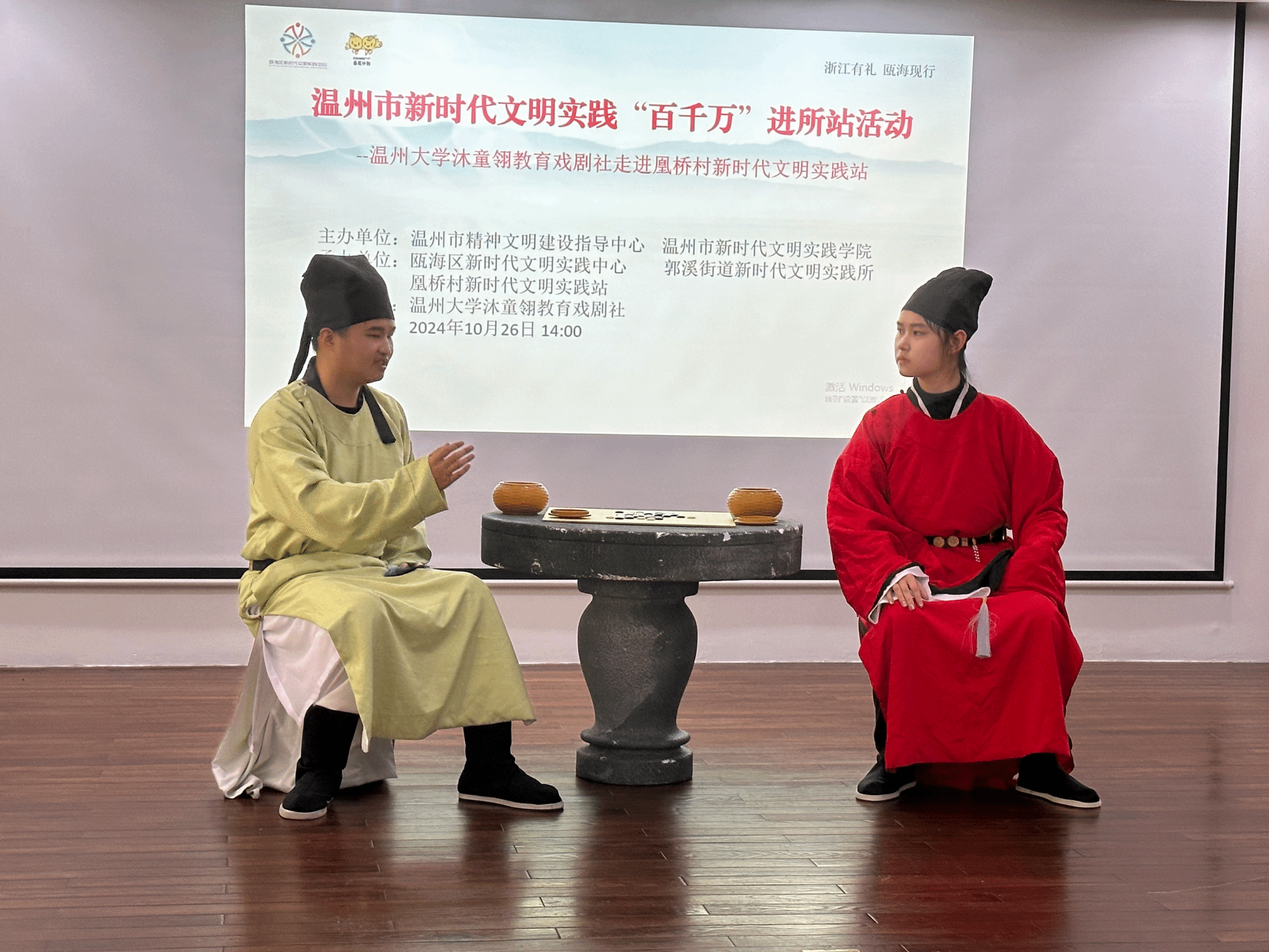 从“少年求学”开始,历“丁园之争”“帮助论敌”“水心论道”四幕场景再现,叶适颇具传奇色彩的一生徐徐勾勒而出。近日,温大p站视频 沐童翎教育戏剧团的大学生们走进瓯海区凰桥村,为当地民众带来了原创话剧《叶适传奇》。此次活动为温州市新时代文明实践“百千万”进所站活动,由温州市精神文明建设指导中心、温州市新时代文明实践学院主办,瓯海区新时代文明实践中心、郭溪街道新时代文明实践所、凰桥村新时代文明实践站承办。现场观众在享受独特视觉盛宴的同时,感受历史的风骨,体悟文化的力量。