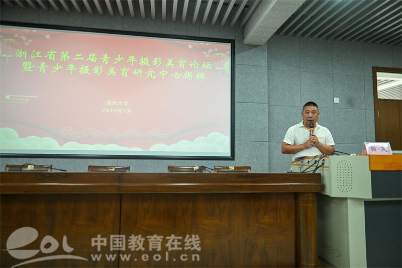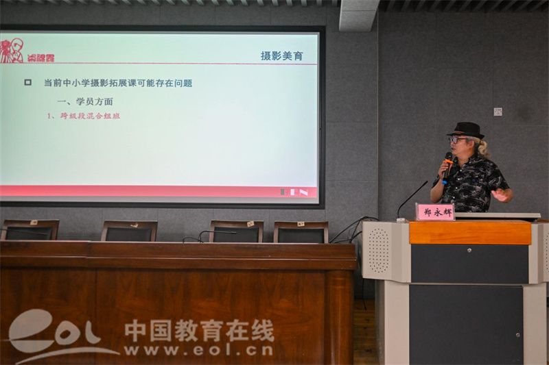 温州市摄影家协会副秘书长郑永辉分享了摄影美育课堂创新采用"寓教于玩"模式,跨年级混班、游戏化任务、分组竞赛、校园影展等结合,破解设备差异,在趣味实践中有效提升学生审美素养。