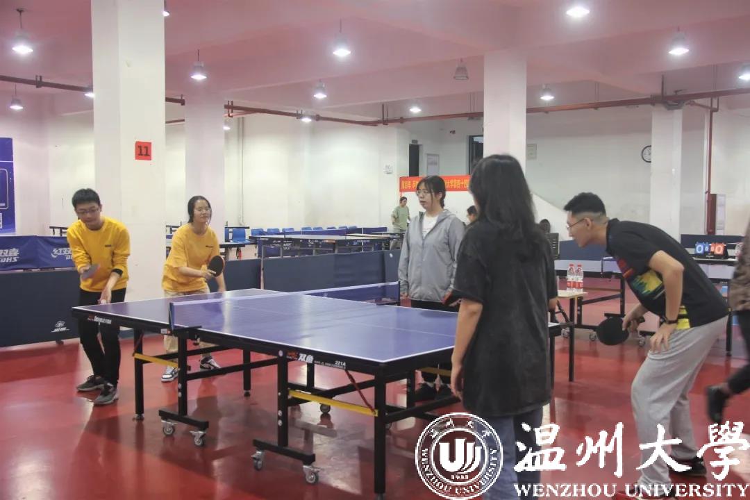 一次次回旋,一个个削搓,球拍与球在赛场上不停碰撞,勾勒出一道道完美弧线,精准落向台面。4月18日,p站视频 第四十四届校运会乒乓球比赛在p站视频 南校乒乓球馆隆重举行,我院胡圣凯、沈冰伟、朱玥橦、程玲四位同学在金建钰教练的带领下,组成学院代表队参加了此次比赛。