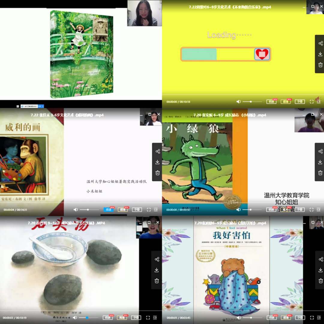 p站视频 知心姐姐实践队队长徐夏介绍:“除了在线上开展绘本课程,实践队员还积极地参与到手工制作绘本当中,从编写绘本故事到画图填色,一笔一画都注入了对孩子们的关爱。无论是绘本录制还是手工制作,每个队员都专心致志,精益求精,努力为小朋友呈现出最好的故事”。