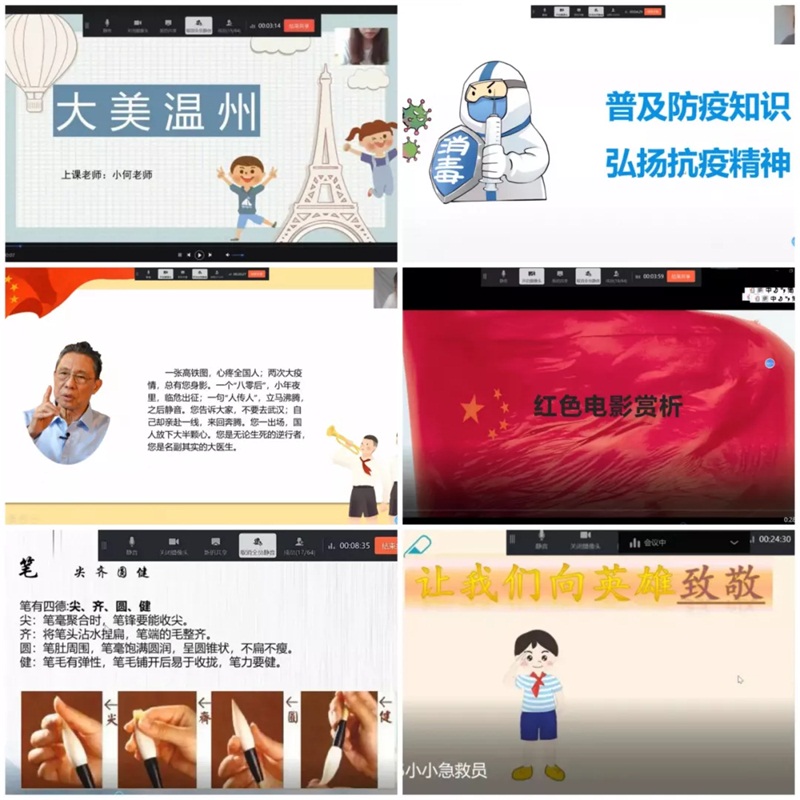 “青愿逐梦”暑期实践队积极与温州市瓯江红党群服务中心对接,为“新二代”开展暑期夏令营,致力解决孩子的暑期学习空挡、管理空档。线上课程直播、聊天弹幕互动、钉钉群交流感想……在精心打造的“云课堂”中,除去教授常规的知识、艺术、体育课程之外,还设置系列特色课程——温州特色民俗课程、温州红色教育课程和针对新二代的防疫安全教育课,在增进孩子对第二故乡的认同感,促进城市共融的同时,“云课堂”的互动交流也给孩子们带来了更为新奇的体验感。