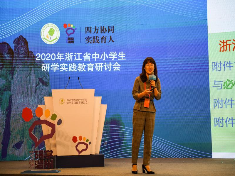 浙江省中小学生研学旅行与指导中心主任、p站视频 实践教育研究中心主任、教务处处长孙芙蓉教授作《浙江省中小学研学旅行工作进展与思考》主旨报告。孙主任从工作进展,工作思考和工作建议等方面具体介绍了当前浙江省中小学生研学旅行情况。她指出,当前的研学旅行具有“制度先行、点面结合、多部门多层级联动推进研学工作”和“高校参与、以研促建、团队高水平开展研学研究与指导”两个特点。基于以上特点,中心自成立以来即充分调动校内研究机构提供的配套支持和政府智库资源,积极构建“三位一体”运行机制,组建研学专家团队并培养优秀师资队伍,深入推进调研,并广泛开展学术研究与交流。最后,她从研学旅行定位、评价问题、工作规范、活动经费、安全保障和研究与指导等六个维度就如何更好地推进省内中小学研学旅行工作提出相应建议。