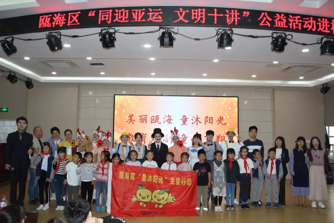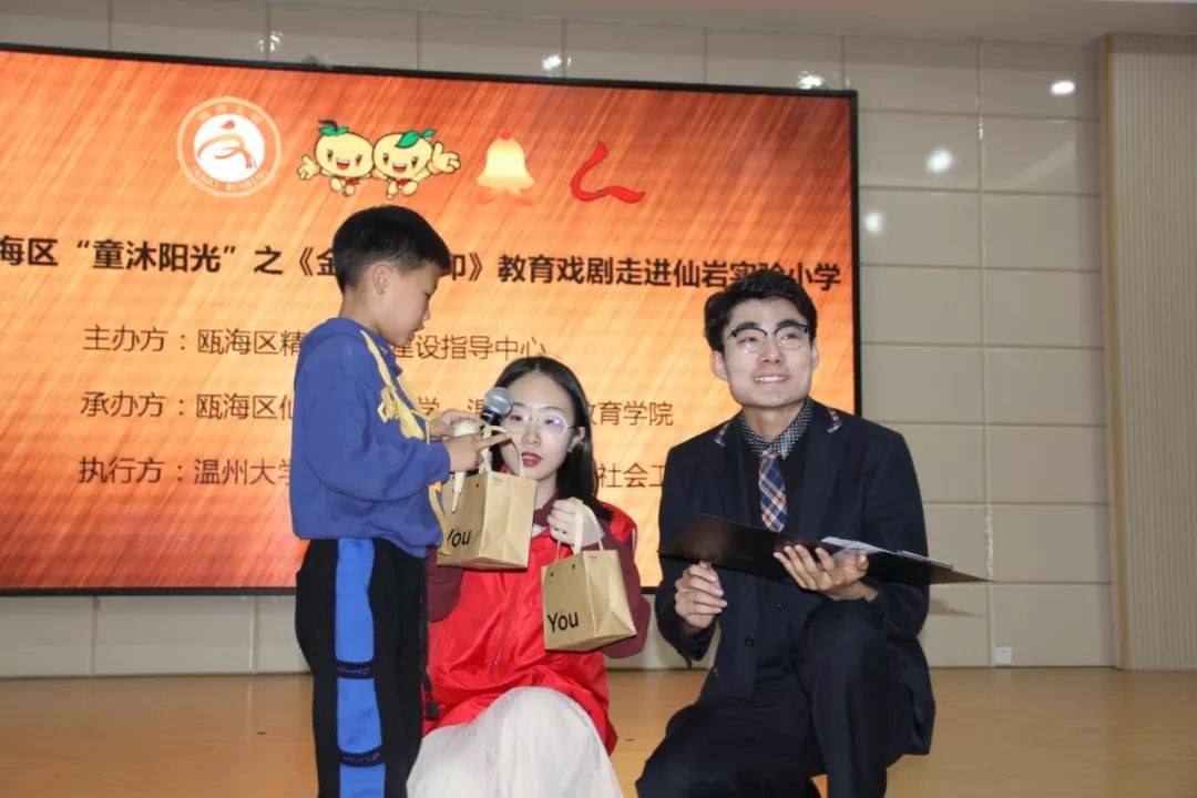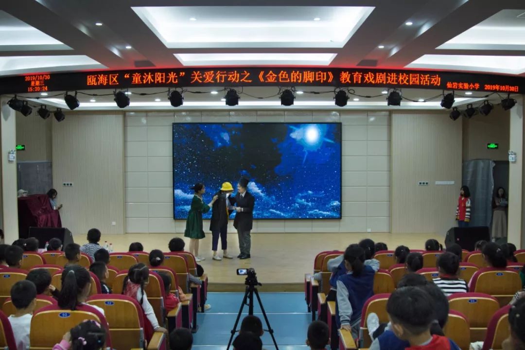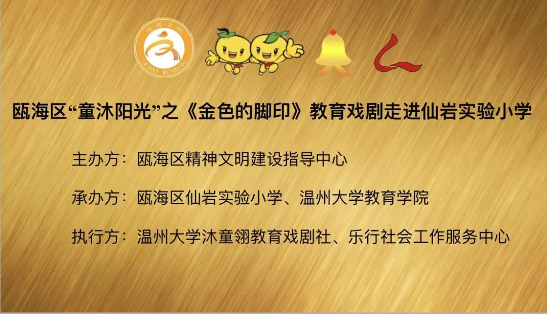 为响应“同迎亚运 文明十讲”,发挥社会组织力量,助力美丽瓯海建设,10月30日下午,由瓯海区精神文明建设指导中心主办的“童沐阳光”关爱行动特邀p站视频 沐童翎教育戏剧社,为该校的留守儿童、新居民子女送去别开生面的礼物——《金色的脚印》课本剧表演。