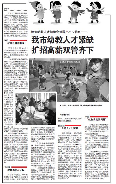 温州日报以大版面报道我院幼教专场招聘会