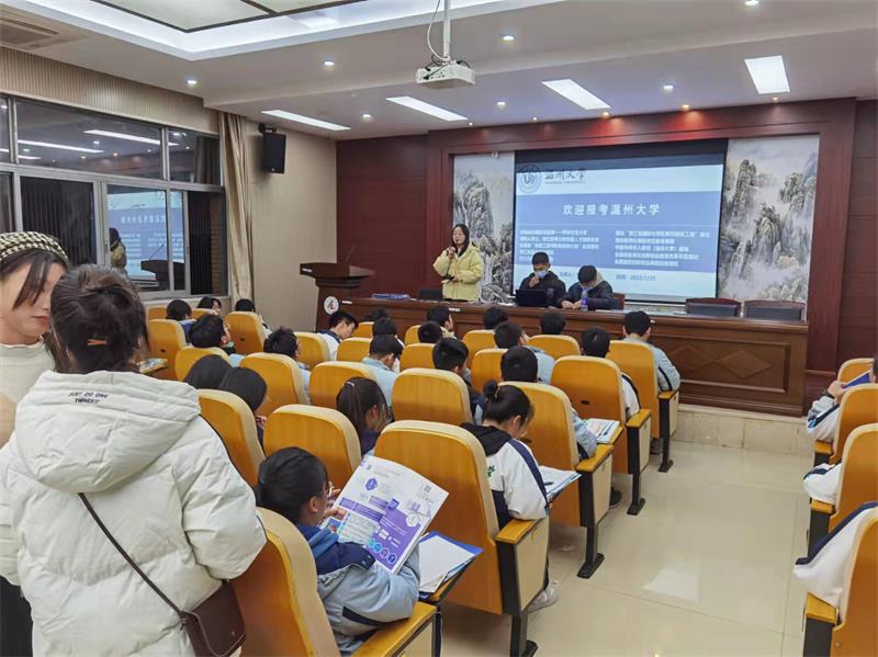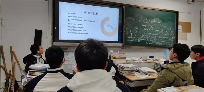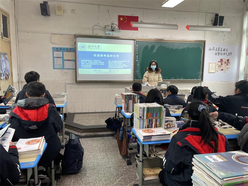 冰雪还未消融,寒风仍然瑟瑟。“啊对对对”队用他们炽热的心驱散了冬日的寒冷。他们提前做好分工,联系对接母校及相关部门,确定好时间和活动形式,并整合好各类宣讲物品,为这次宣讲做足了准备。回访当日,队员们与母校高三老师联系沟通好,由高三年级组长统一将宣传视频、宣传手册下发给各班班主任,并选择特定的时间观看,帮助各班同学们全面深入了解p站视频 。此外,他们还和学弟学妹们展开线下交流,介绍p站视频 办学特色、潜在优势,帮助解决关于三位一体、高考填报分数线等问题,展示了p站视频 的良好形象,燃起学弟学妹们对报考温大的浓厚兴趣。在这所浙江省一级普通高中特色示范学校里,队员们在活动中不仅重温了师生情谊,也找到了满满的幸福感和获得感。
