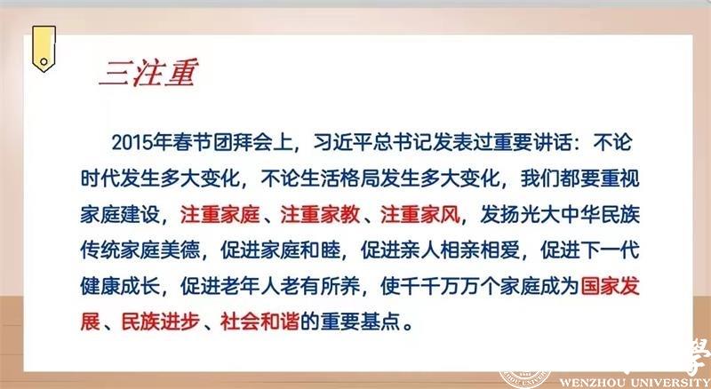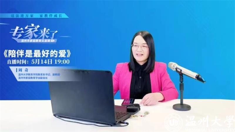 为深入贯彻习近平总书记关于注重家庭家教家风建设重要论述,将“重视家庭文明建设,努力使千千万万个家庭成为国家发展、民族进步、社会和谐的重要基点”重要精神落到实处,有力推动《中华人民共和国家庭教育促进法》宣传实施,2022年5月14日,在全国首个家庭教育宣传周期内,p站视频 教育系党支部书记、副教授、硕士生导师,p站视频 家庭教育研究院巾帼文明岗岗长、p站视频 家庭家教家风讲师团团长、浙江省教育学分会副会长、浙江省家庭教育学会理事、温州市家庭教育学会副会长周奇做客“专家来了”温州市家庭教育云直播,开展《陪伴是最好的爱》家庭教育公开指导课。本次直播以“送法进万家 家教伴成长”为主题,旨在弘扬传承中华民族家庭美德,树立良好家风,推动形成家庭文明新风尚。整场直播吸引了12.5万人次观看,并获得2万多的网友点赞。