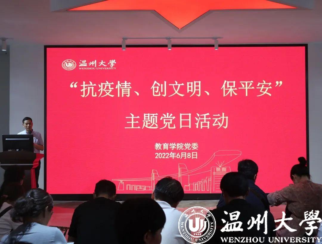 在思政课虚拟仿真体验教学中心,学院开展“抗疫情、创文明、保平安”主题党日活动。学院党委书记何毅根据市委组织部《关于以“抗疫情、创文明、保平安”为主题集中开展支部主题党日活动的通知》精神,带领大家学习当前市委市政府关于全面决战决胜全国文明城市建设攻坚的部署要求,传达近期学校关于文明城市创建验收相关通知精神,从校园环境、公共场所、生活居所、形象礼仪、文明用语等多个方面介绍了文明温州创建的要点和要求。他指出,全体教职工应充分认识到文明城市创建对温州的重要性,要把自己摆进文明城市创建过程中为其出一份力,把学校关于文明创建的标准和要求落到实处,特别是支持配合所在社区开展各类创文志愿活动。