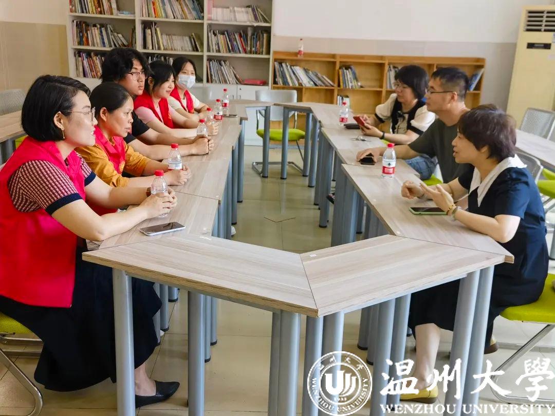 首先,温大学前教育系主任李娟教授向温州市特殊教育学校领导们介绍了我系参会师生及温大学前教育专业基本情况,尤其是近些年对特殊教育研究方向的重视及实际开展的一些工作。接着,温州市特殊教育学校课程管理中心主任黄锦秀向大家介绍了关于学校办学规模、课程设置等基本情况。温州市特殊教育学校副校长胡乐主要围绕校园管理、师资队伍建设、学生教育等方面和我系师生进行交流。座谈会上,大家畅所欲言,各抒己见。