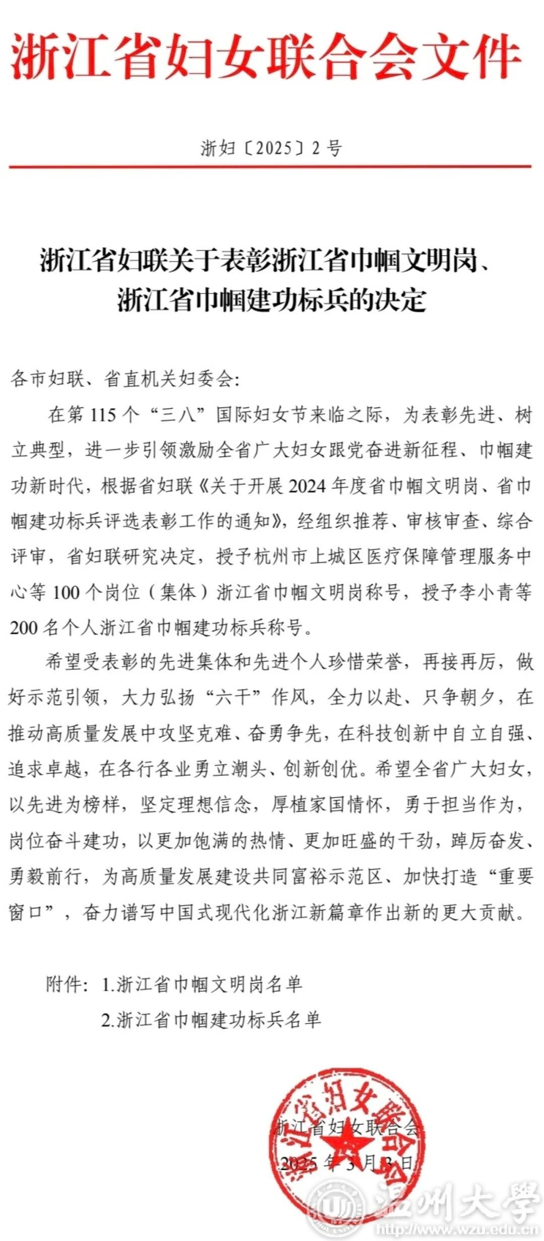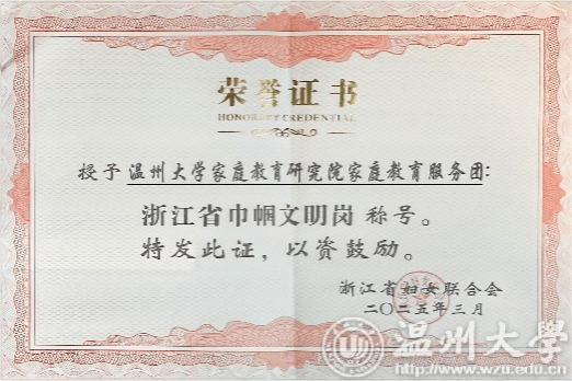 在第115个“三八”国际劳动妇女节来临之际,浙江省妇女联合会发布《关于公布浙江省巾帼文明岗、巾帼建功标兵的决定》,p站视频 家庭教育研究院家庭教育服务团队荣获浙江省“巾帼文明岗”荣誉称号。这是p站视频 第二个团队获此殊荣,充分彰显了学校妇联在推动妇女事业和教育发展方面取得的显著成效。