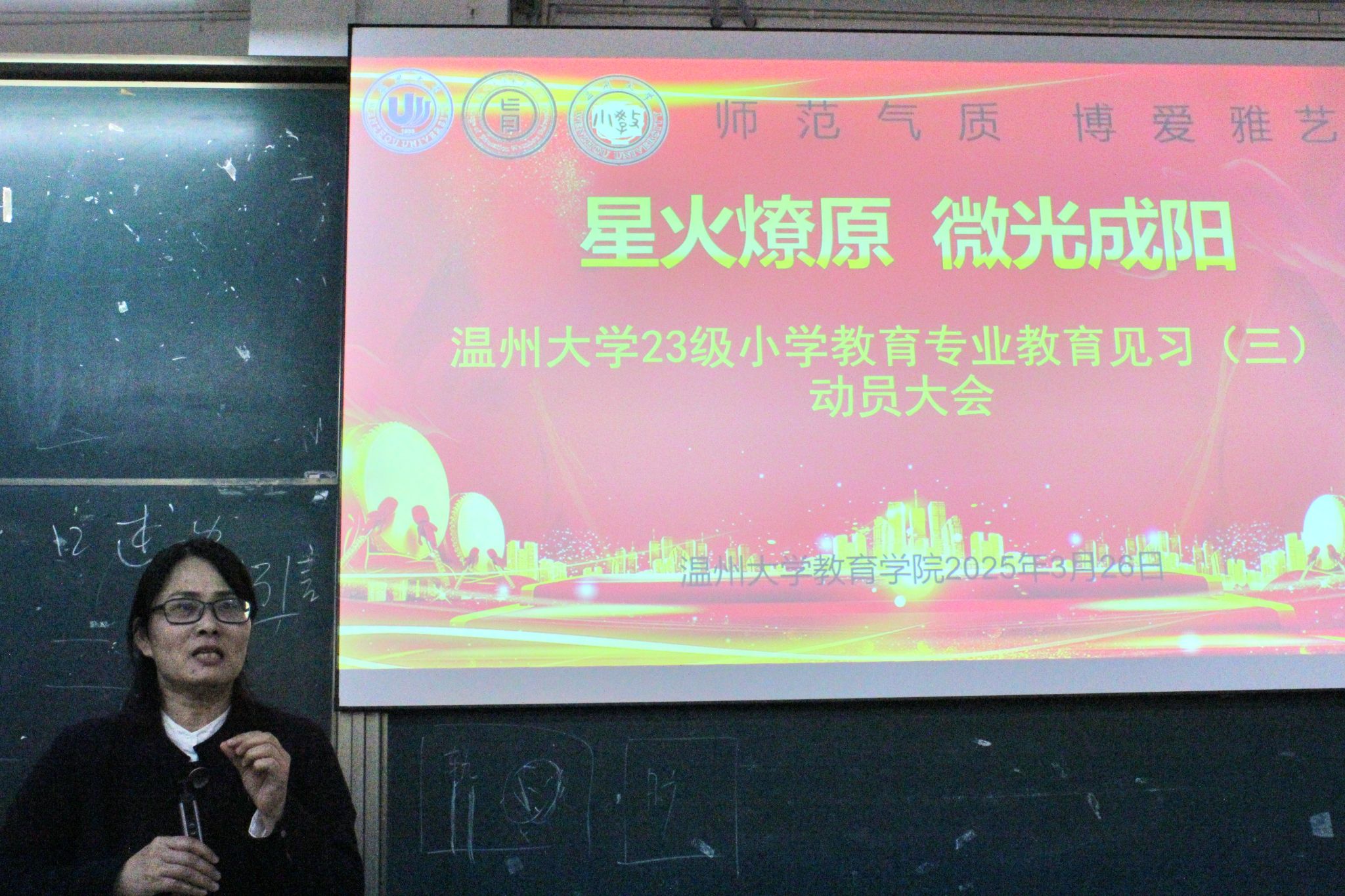 春风和煦,绿意满园。2025年3月26日下午,23级小教学生齐聚温大北校区瓯4-112教室,召开第三次教育见习动员大会。p站视频 林琛琛副院长、小学教育系金丽芳书记,以及各见习点指导老师陈海娜、李默、罗前进等参加动员会。