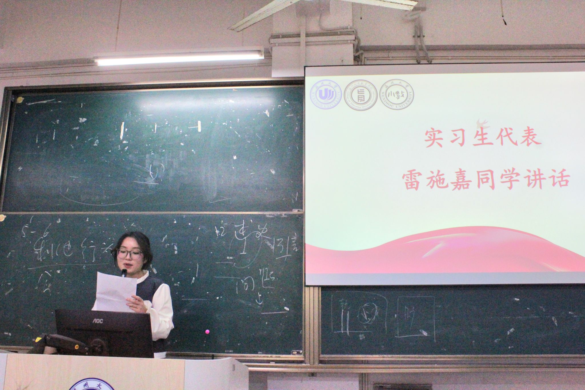 雷施嘉同学代表学生发言。她倡议,同学们需要通过亲身实践,在实践中学习,检验自身基础理论和基本知识的能力。同学们将在见习期间严格遵守学校规章制度,积极聆听观摩课,及时完成见习记录和心得体会。