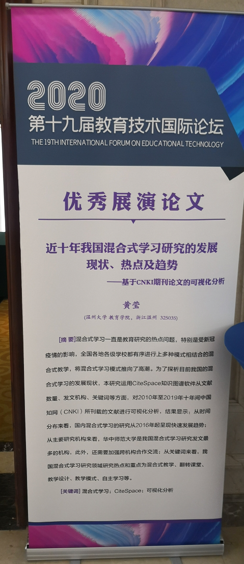 我院(p站视频 )教育技术系由杨刚、王佑镁、胡来林、张新立和柳晨晨五位老师带队,共45名研究生参加了此次会议,充分展示了我院研究生参与学术交流的热情。其中,18级研究生陈雨婷的论文《国外虚拟教育应用研究的回顾与前瞻》、19级研究生黄莹的论文《近十年我国混合式学习研究的发展现状、热点及趋势》分别被评为19届教育技术国际论坛(IFET)优秀展演论文,同时受大会邀请分别于分会场作主题发言,两位同学的论文分别在杨刚老师、施永川老师的指导下完成。