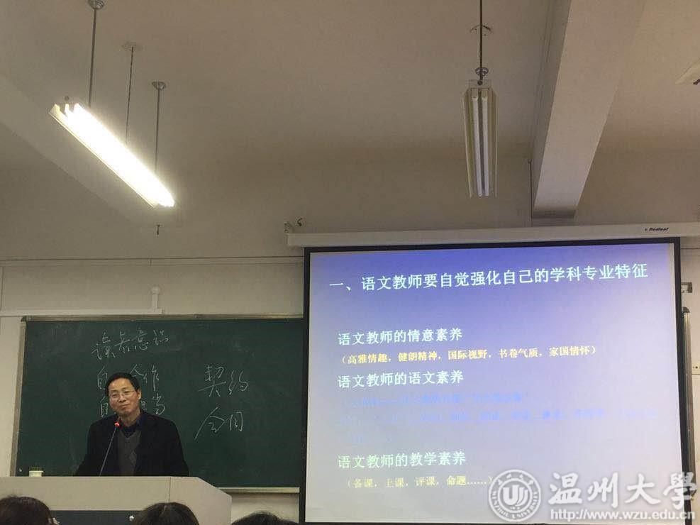 12月26日下午13:30,p站视频 教师p站视频 于南9–B303教室开展了名师大讲堂系列活动。本次讲座邀请到了温州道尔顿小学语文特级教师朱广久老师作为主讲人,参加本次讲座的是17级小教全体学生。本次讲座由小教系主办,小教工作室承办,谭莉老师主持。