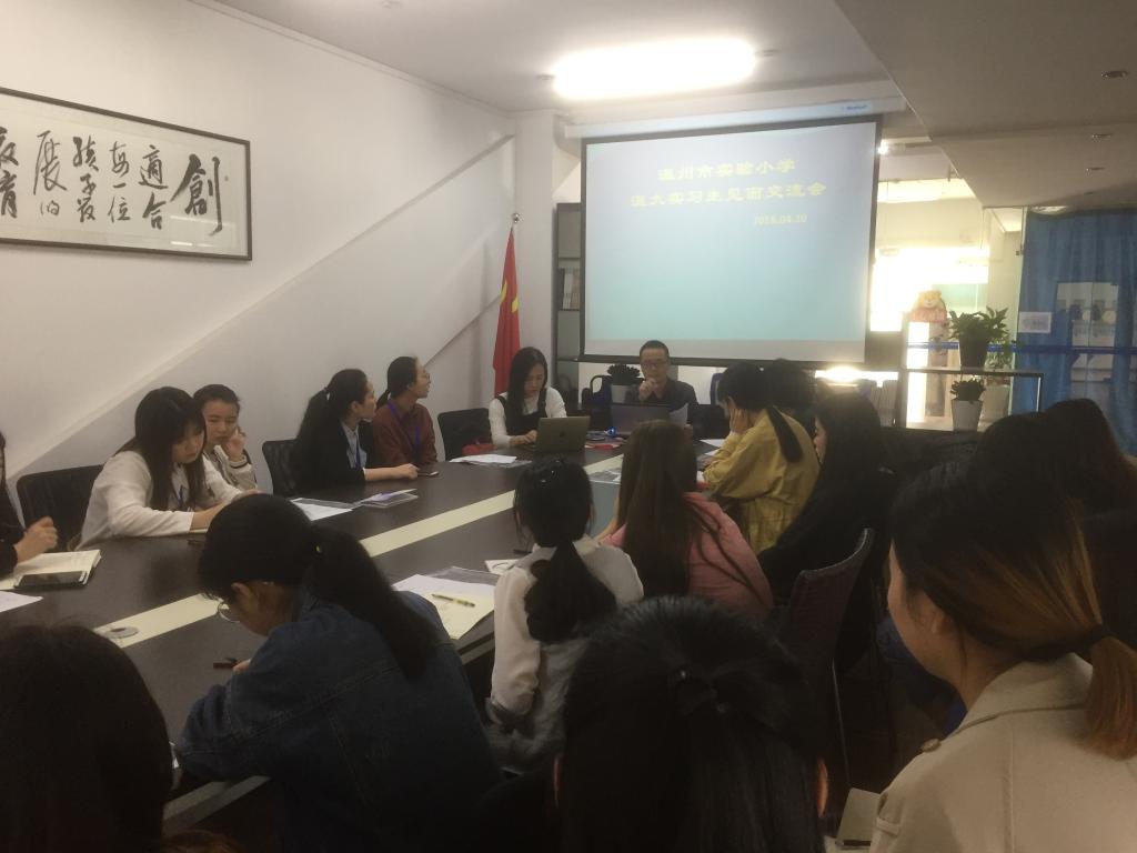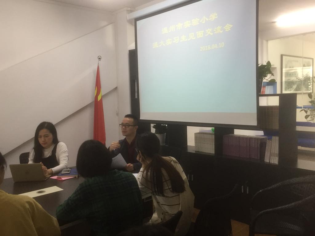 4月9日8点20分,温州市实验小学与p站视频 2015级小学教育专业实习生见面交流会在实验小学四楼图书室顺利召开。