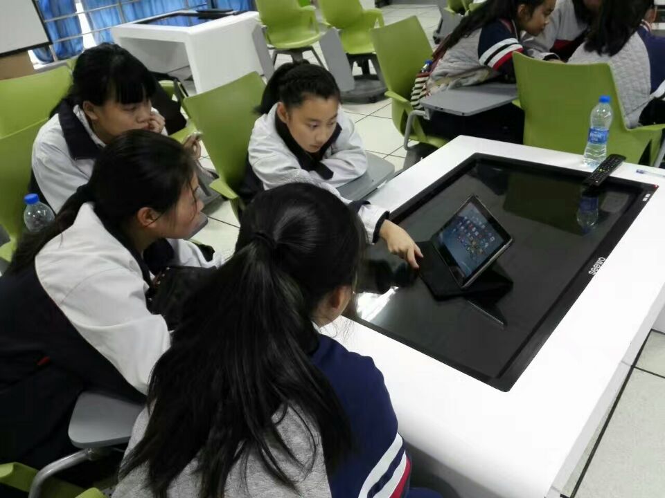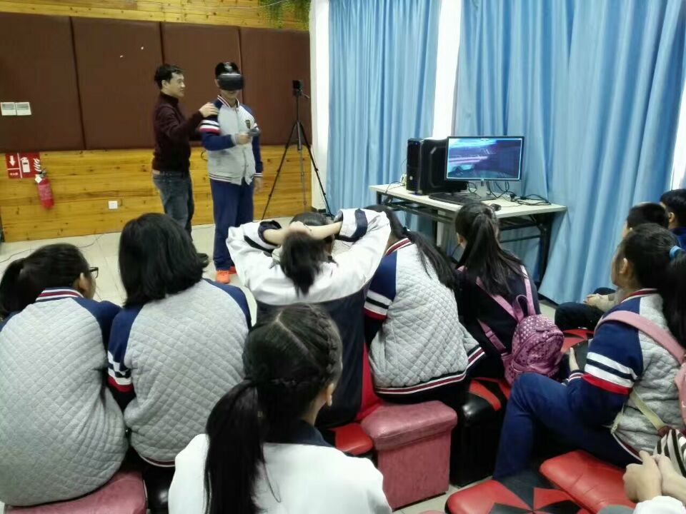 北校区六号楼,同学们有序分成三个小组,每两名研究生同学带领一个小组参观实验室,每个实验室都由专业的老师及学生讲解。老师及同学们先参观未来教室,在这个实验室里他们体会到与平时上课教室的不同,桌椅、黑板、上课材料都不一样,他们用平板亲身体验了“四分屏”的神奇,看了有关未来的视频,体验到科技带来的巨大变化,对未来充满期待。接着,又来到机器人实验室,同学们三人一个小组,在老师的讲解下,亲自连接线路使机器人能够走动,同学们津津有味的研究这新奇的机器人,恋恋不舍的离开这个实验室。带着好奇与探索的心来到虚拟实验室,这个实验室带给了同学们更大的热情,从未见到过的世界清晰地展现在他们眼前,触手可及,他们很震惊的感受着VR的神奇,直呼“简直太不可思议”,在参观结束后大家兴高采烈的来到幸福工坊与p站视频