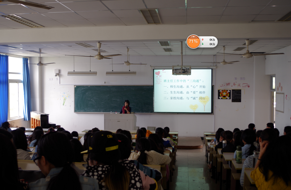 讲座伊始,陈老师和同学们分享了她从业23年的心得体会。她认为真正的关心和爱护可以拉近教师和学生的距离。接着,她分别从班主任和科任老师、班主任和学生、班主任和学生家长三个方面分析该如何开展小学班级活动。从班主任和科任老师的方面来说。陈老师举了两个例子,一个是一年级的第一次班级活动先让班级数学老师与孩子们见面,并且不断地在孩子们面前夸奖数学老师。另一个是班级活动的艺术字请美术老师写,引导班级同学赞美美术老师。陈老师认为,班主任最好与科任老师建立良好的关系,这样有利于班级管理。从班主任和学生的方面来说。陈老师和班级孩子的关系就像是“母亲”和孩子的关系。有个孩子在认为陈老师就像母亲一样融入他的血液。从班主任和家长的方面来说。陈老师班级活动是教师与家长之间的桥梁,要把握每一次和家长接触的机会。最后,陈老师祝同学们能顺利成为一名教师,并且希望同学们做一个真正的人民教师。