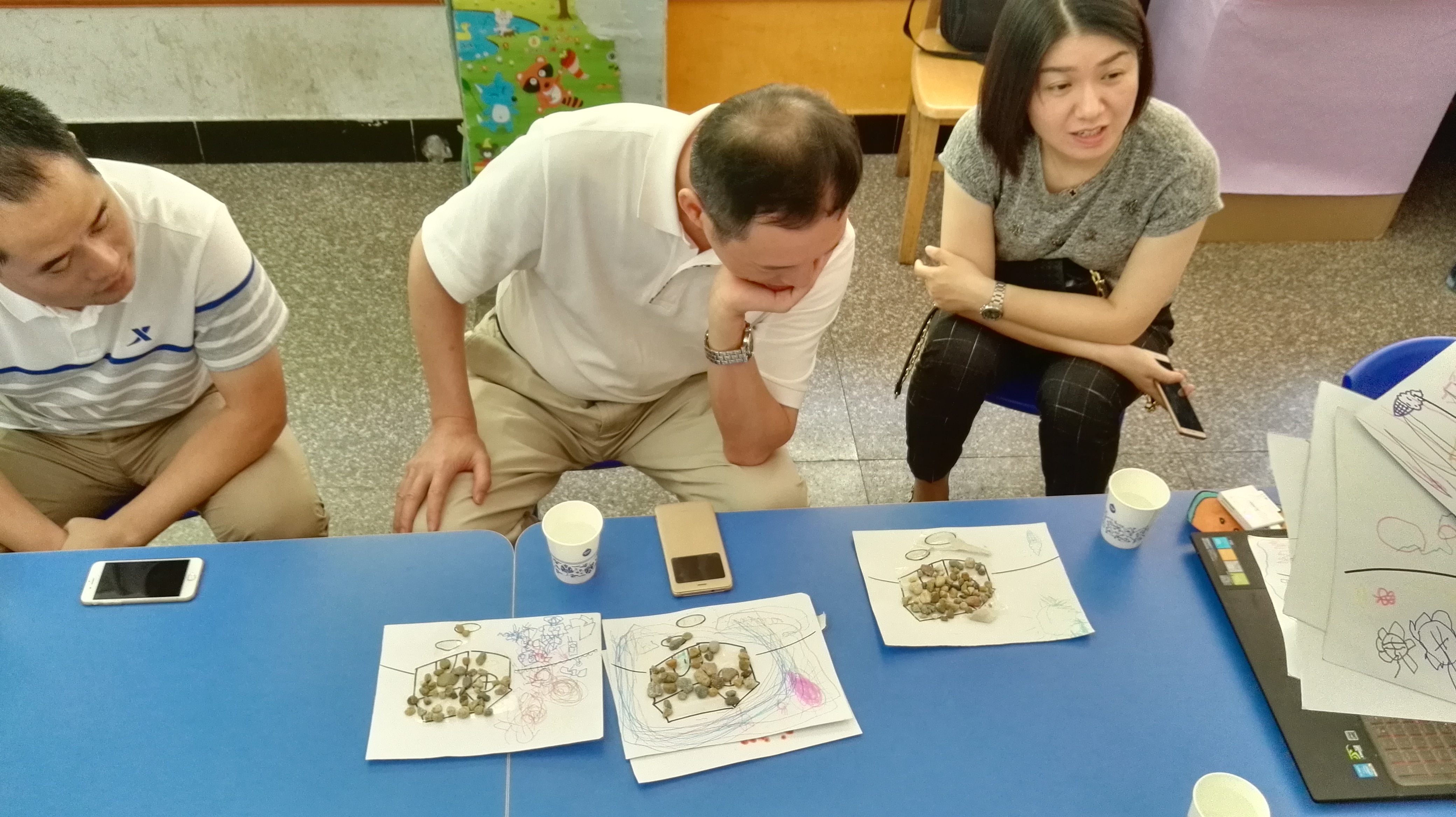 接着,携手童真实践队的队员们做了自我介绍并分享自己的实践体会。大家都表示在这个实践过程中渐渐成长,收获了许多也学到了很多,并且庆幸自己能参与这么有意义的实践活动。在交流完心得体会之后,队长向牟书记一行人就实践队的基本概况做了简单介绍,指出我们实践队的特色教学活动是立足于青田当地的特色文化,从而使小朋友们从小受到当地文化的熏陶。她采用图文并茂的方法,配以成果照片和解说总结了上一周以“青田石雕与石文化”为主题的教学活动,并诉说了对未来“青田稻鱼共生系统”主题周的展望。